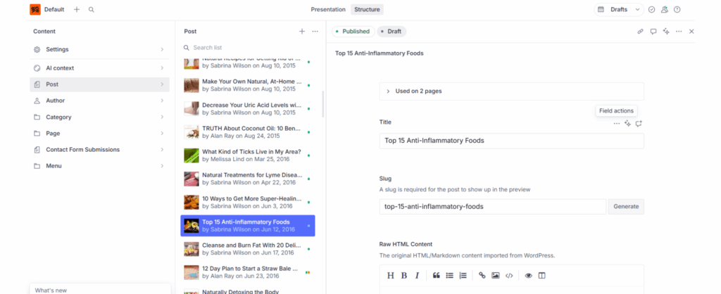• Mapped WordPress Data to Sanity Schema: Made sure WordPress content mapped correctly to the Sanity fields. We also transformed some data to fit the new model.