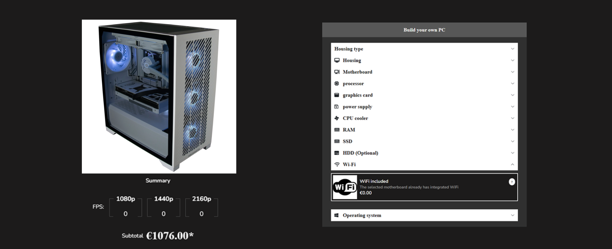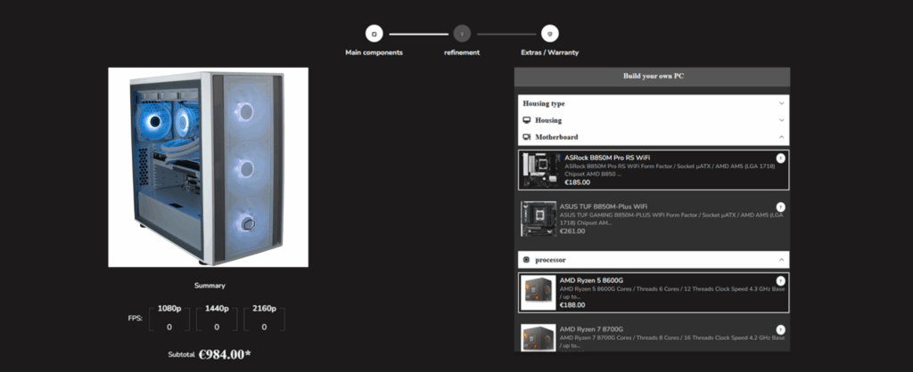 - The online product configurator follows compatibility logic that ensures users only select components that are compatible with each other. For example, it ensures the GPU wattage matches the power supply.