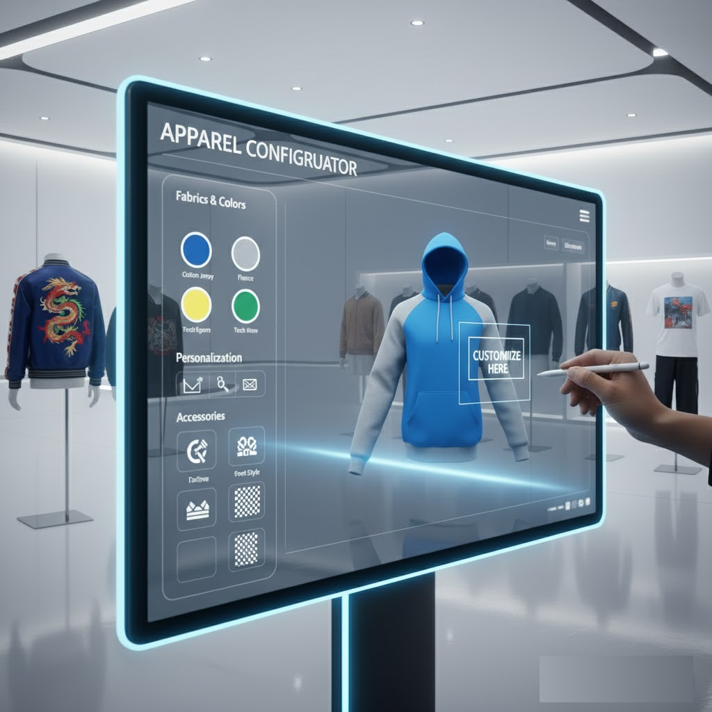 We built a 3D clothing configurator that allows customers to design custom clothing items, from t-shirts to jackets, by selecting fabrics, colors, and personalization options like embroidery or printing.