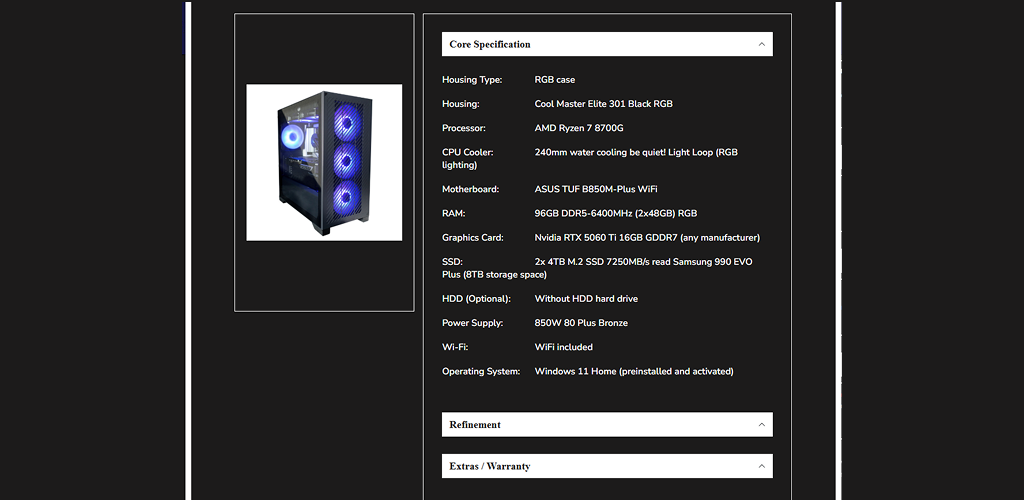 An online product configurator is a tool that allows customers to easily design and customize products on a website. For PCs, this means users can select each componentโsuch as the CPU, GPU, RAM, storage, and cooling systemโto create a machine tailored to their needs.