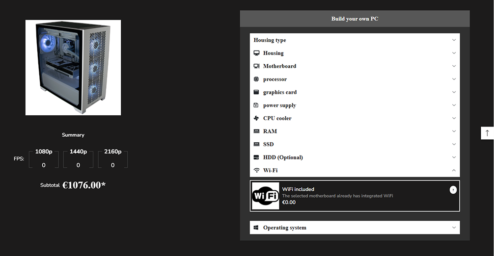 - The online product configurator follows compatibility logic that ensures users only select components that are compatible with each other. For example, it ensures the GPU wattage matches the power supply.